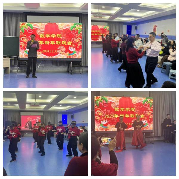 联欢会上,舞蹈串烧、武术、歌曲等节目纷纷上演、精彩纷呈,展现了数学人的多才多艺、活力自信。晚会中还设置了游戏和抽奖环节,充满了欢声笑语。2025年,全院师生携手共进,将以更加饱满的热情和昂扬的斗志,勇攀高峰,共绘学院发展壮美新蓝图。