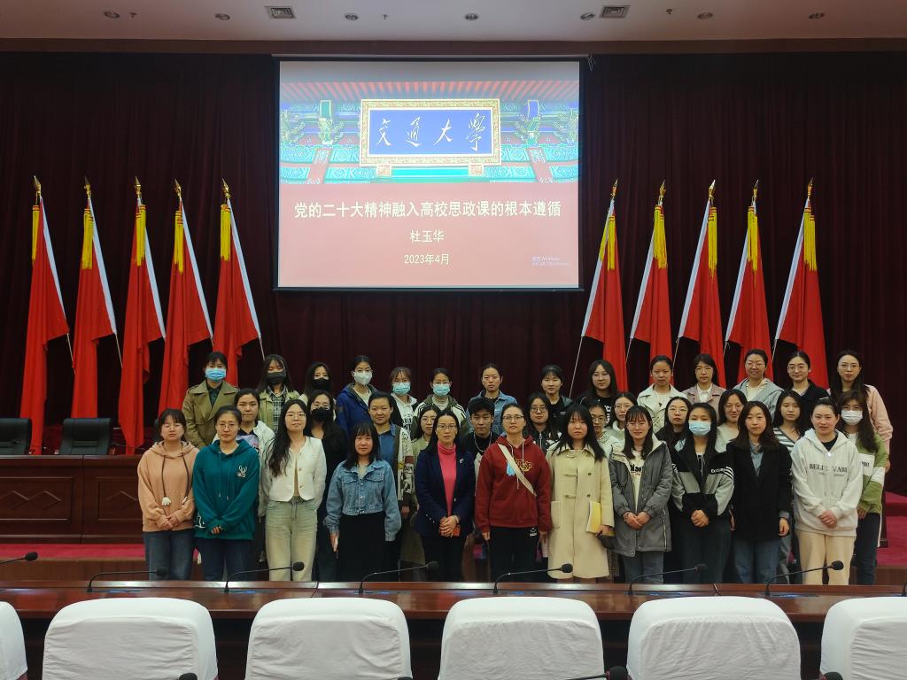 宣讲会由上海交通大学马克思主义学院的杜玉华教授主讲,杜教授从牢牢把握过去五年工作和新时代十年伟大变革的重要意义、牢牢把握新时代中国特色社会主义思想的世界观和方法论、牢牢把握以中国式现代化推进中华民族伟大复兴的使命任务、牢牢把握以伟大自我革命引领伟大社会革命的重要要求、牢牢把握团结奋斗的时代要求等五个方面对党的二十大提出的新思想新论断、作出的新部署新要求进行了深入解读,帮助师生党员深刻领会党的创新理论的思想精髓,明确党和国家事业未来发展的方向,坚定“四个自信”,坚决做到“两个维护”。