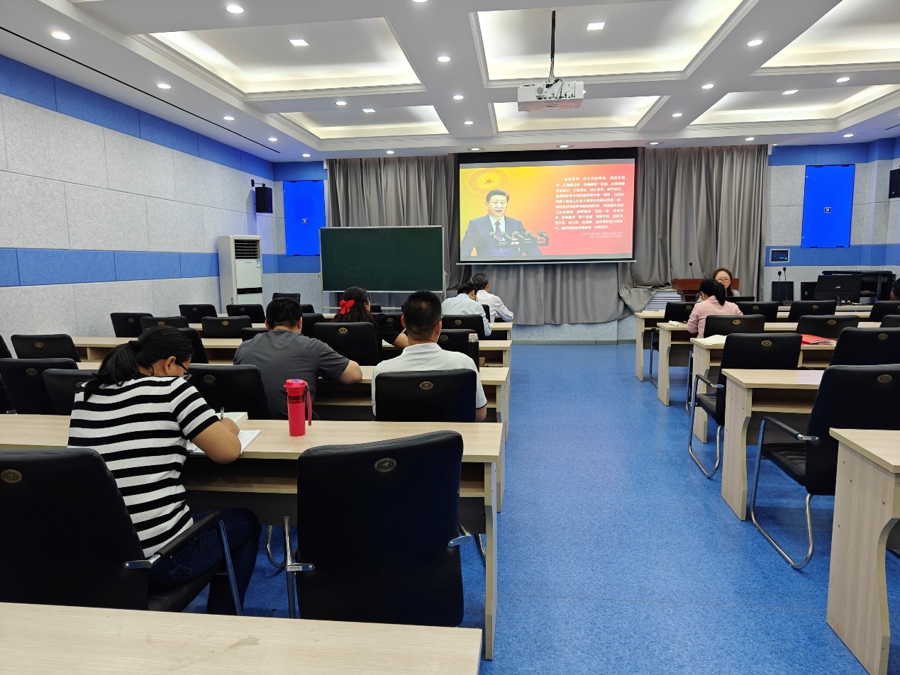 教工第三党支部党员在9号楼924会议室开展贯彻习近平新时代中国特色社会主义思想主题教育——坚持和加强党的全面领导的第四次专题学习。