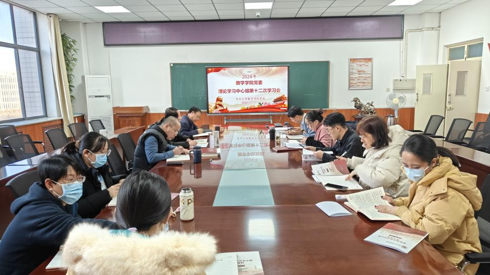 在9号楼6层会议室召开2024年党委理论学习中心组第十二次集体学习会议。会议由院党委书记薛亚奎同志主持,全体处级干部、院党委委员、各党支部书记、教师代表一起参加了本次学习。