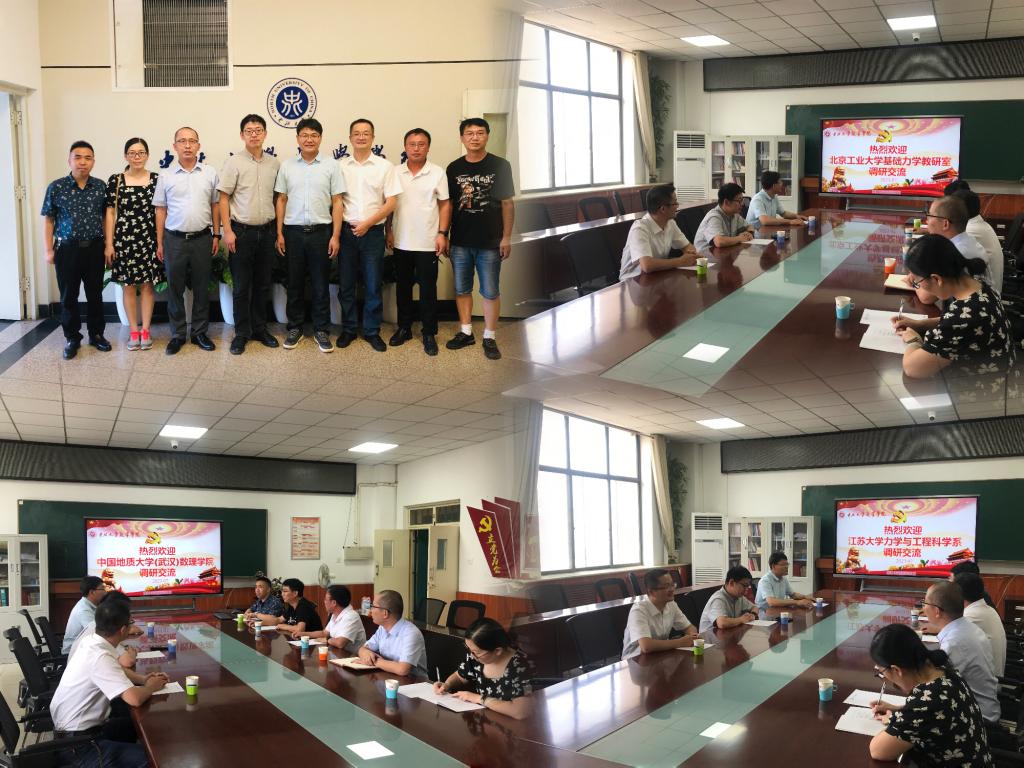 7月20日下午,北京工业大学曹东兴教授、中国地质大学(武汉)魏周超教授、江苏大学韩修静教授一行3人来学院调研交流。副院长王鹏、副院长吴森林、概率统计系主任张峰、计算科学系薛震、实验中心主任肖亚峰、教学中心主任宋妮参加了座谈会。