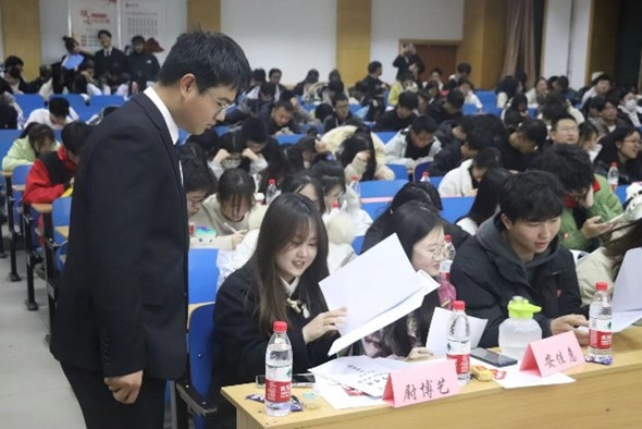 团委的工作人员与各团支部答辩班级代表都早早到达了现场,开始了紧张有序的赛前准备工作。下午四点,比赛准时开始。伴随着参会人员合唱的中国共青团团歌《光荣啊,中国共青团》,本次比赛拉开帷幕。在主持人介绍了本次比赛的评分细则后,答辩正式开始。