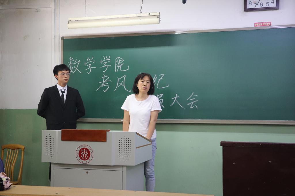 大会第二项,由于敏老师总结讲话。她从四个方面为大家强调了考试的重要性。一是要重视考前复习,注重平时学习习惯的养成;二是保持良好心态,重视考试也要正确对待;三是严守考试纪律,不仅是单纯的考试,更是人品的检测;四是诚信考试,共同营造良好考试氛围,共建优良学风。