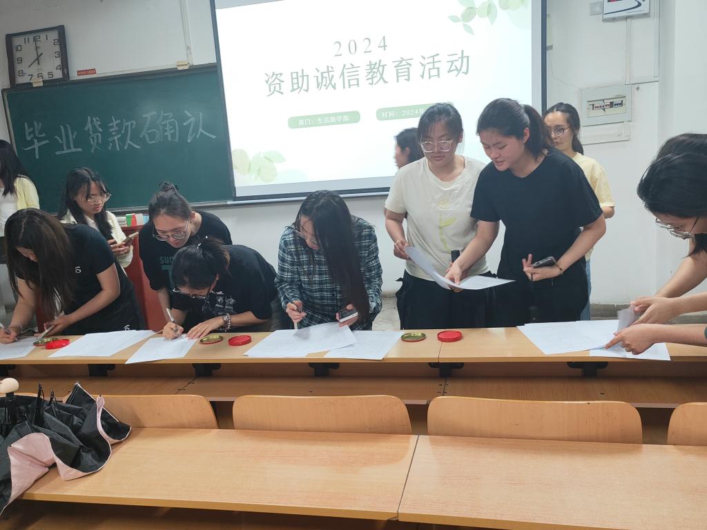 贷款工作的落实,统一组织贷款毕业生现场进行贷款确认,组织学生在毕业确认表签字按手印后存档。