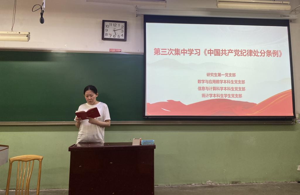 为进一步加强党员纪律教育,提高党员党性修养,6月24日,研究生第一党支部、数学与应用数学本科生党支部、信息与计算科学本科生党支部、统计学本科生党支部,开展“学《条例》 守党纪,让党纪成为党员的行为准则”主题党日活动。