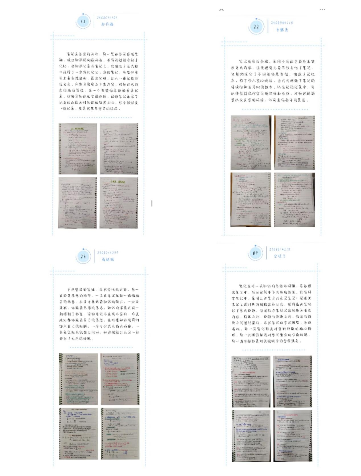 本院于10月16日线上通知大一、大二的班长有关最美笔记活动的事宜, 在10月18日下午18:30-19:00在教学楼九号楼616展开最美笔记征集活动。经过第一轮线下筛选,选出了25本相对较好的笔记;再挑选出每本笔记较精彩且具有个人笔记风采的四页笔记进行拍照,并附上相应的评价,后与青媒部配合,在微信公众号上进行线上投票。