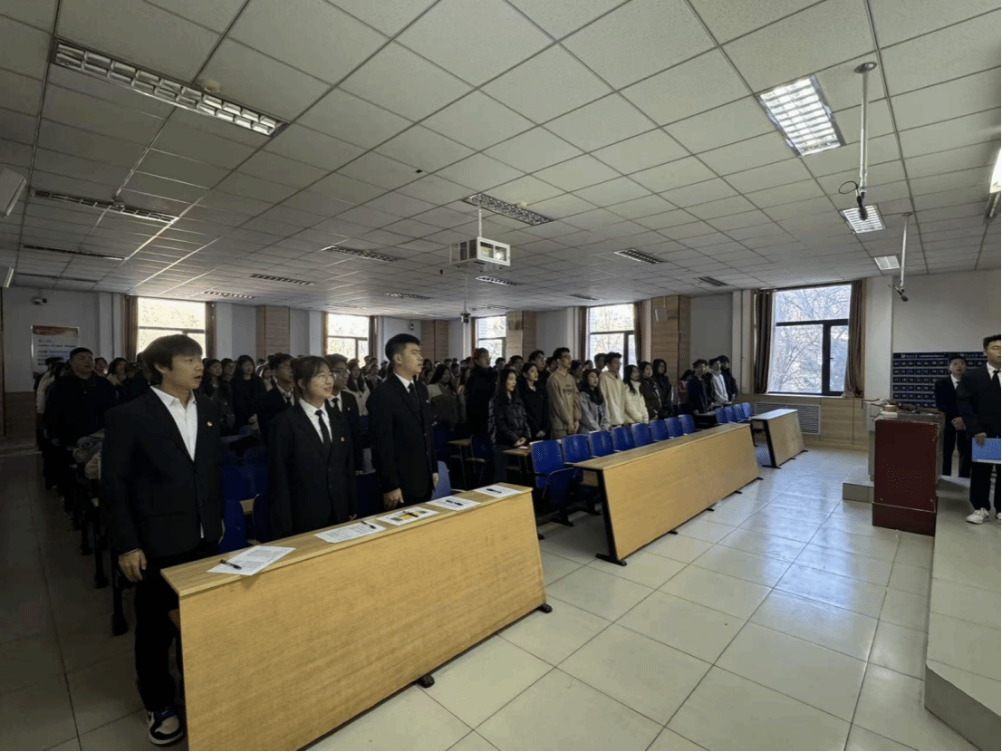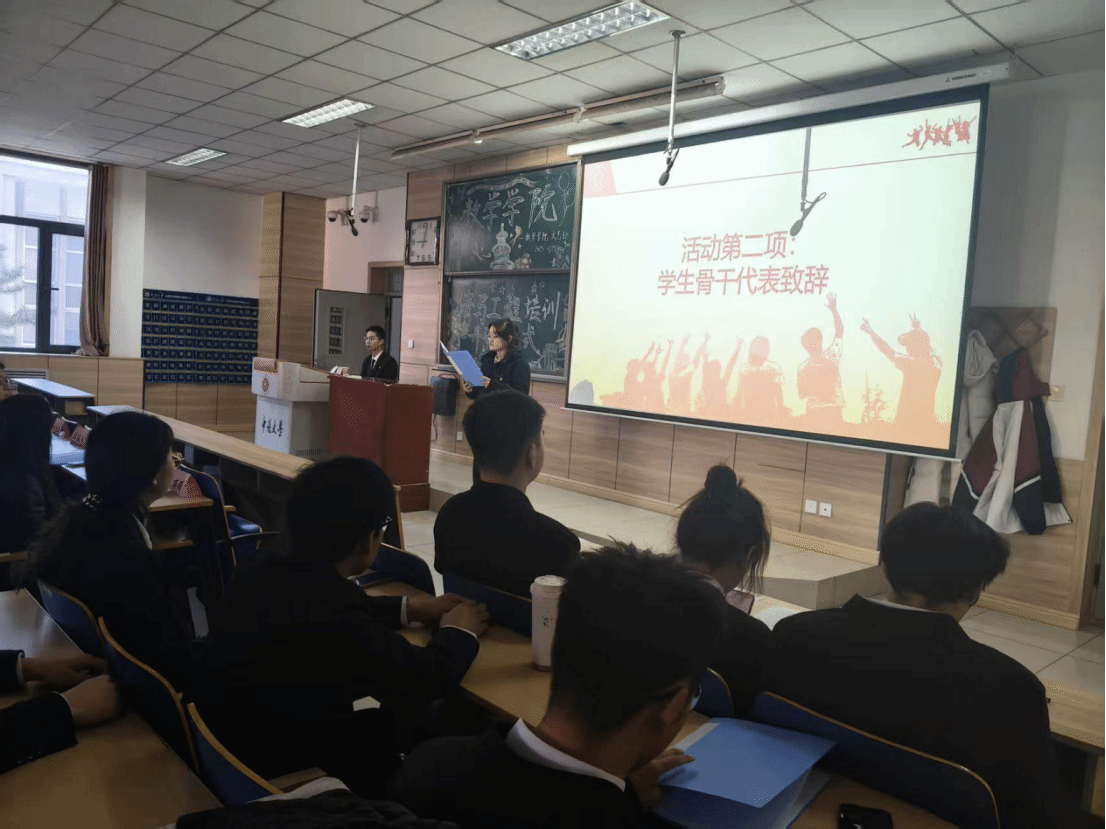 学生会主席金子鑫同学发言并宣读考核制度,明确学习实践要求,传递“团结、创新、积极、求实”的班风理念。最后,全体学员在主持人带领下庄严宣誓,铮铮誓言凝聚着听党话、跟党走的坚定决心,展现了新时代青年的责任担当。