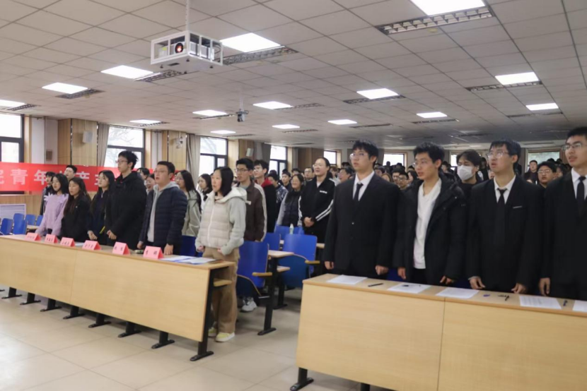 随着主持人宣布开幕式正式开始,现场氛围庄重而热烈。在激昂的旋律中,全体人员起立,齐唱中国共产主义青年团团歌。嘹亮的歌声响彻会场,每一句歌词都饱含着青年学子对团组织的无限热爱与坚定信仰,也正式拉开了本次青共校培训的序幕。