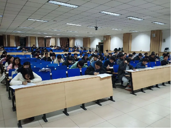 本次大赛以笔试的形式进行,考题由单选、多选、判断和简答题四部分组成。活动开始前,同学们持笔有序来到各自的考场,在工作人员的安排下就坐,并上交自己的手机。考试开始后,工作人员分发卷纸并宣读考场注意事项。考试现场紧张而秩序井然,同学们有序参与、沉稳答题。