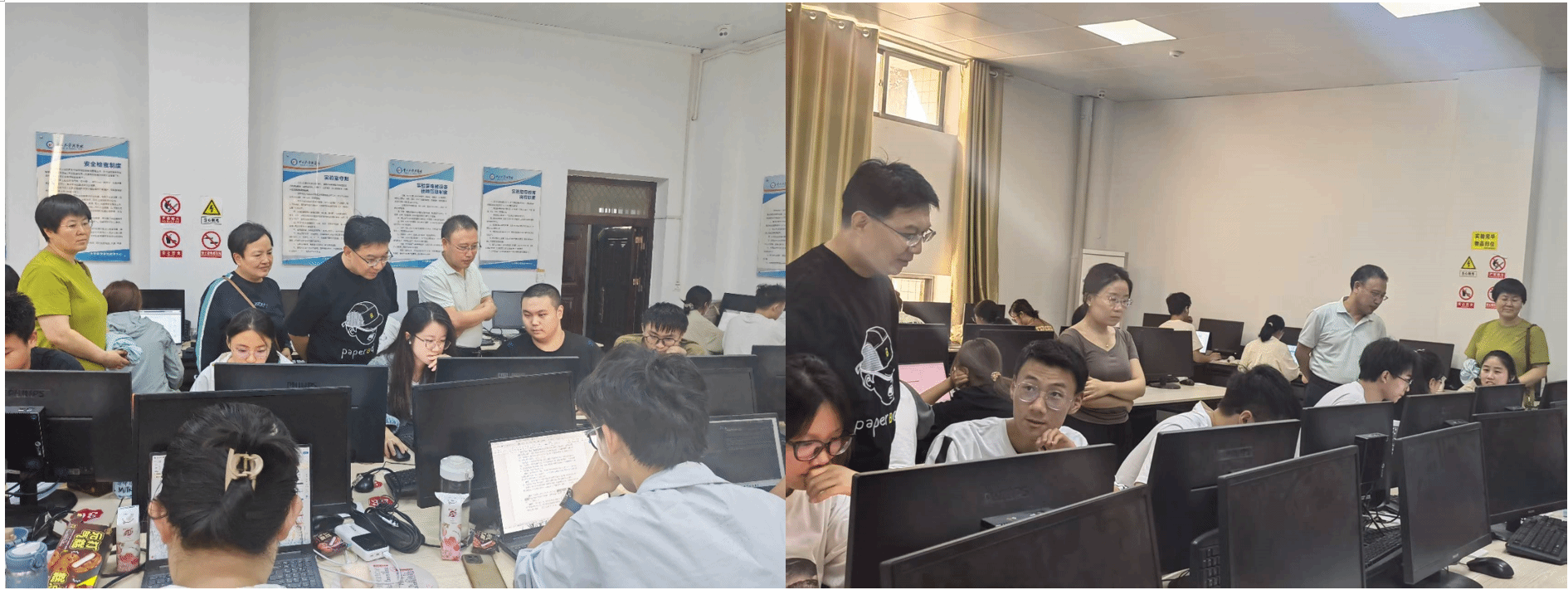 教学副院长王鹏教授在学院部分教师的陪同下来到九号楼一层大学数学实验中心,看望正在紧张比赛中的全体参赛队员。