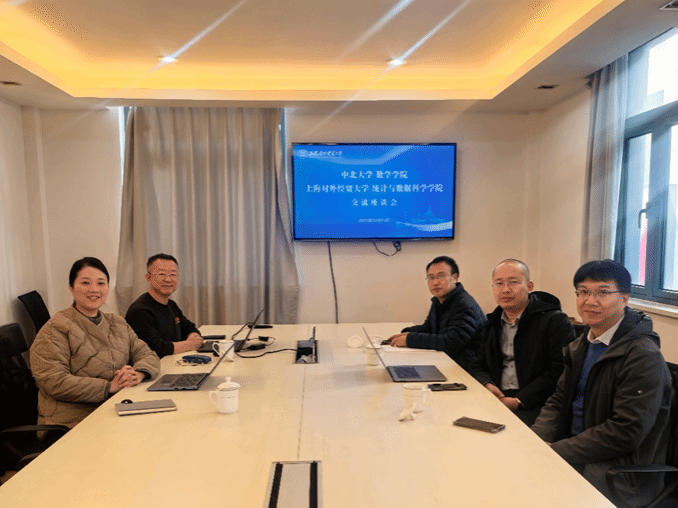 副院长王鹏、吴森林,概率统计系主任张峰等一行赴上海对外经贸大学统计与数据科学学院开展调研交流。上海对外经贸大学统计与数据科学学院党委书记黄静、院长张日权在古北校区热情接待了调研团队,双方相关科室负责人共同参与座谈。